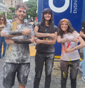 FUTUROS PROFISSIONAIS – Enzo Remy/ 17 anos, aluno do COPE, foi aprovado em primeiro lugar no curso de Direito da UFG e também aprovado na UEG, fazendo a alegria da família, em especial do pai, o renomado advogado Danubio Cardoso Remy. Na foto, Enzo, mais Anna Luísa Mesquita, aprovada em Engenharia da Computação e Ana Luisa Honório, em Engenharia Química, todos na UFG