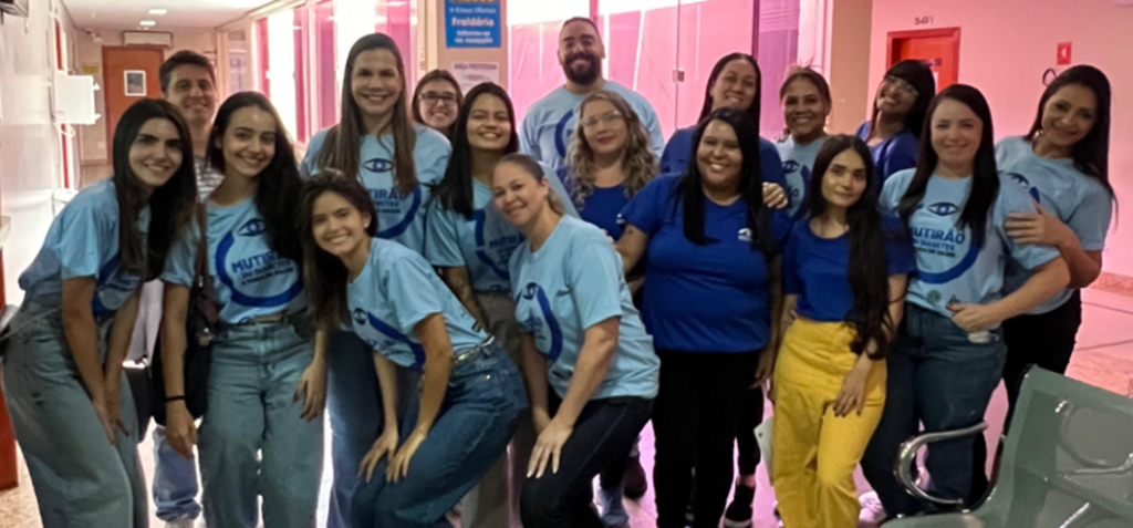 MOMENTO DE CELEBRAR – Oftalmologista da Fundação Banco de Olhos (FBC), Luciana Barbosa Carneiro e parte da equipe celebram o sucesso da 10ª edição do Mutirão Multidisciplinar do Diabetes em Goiânia e Feira da Saúde. “É lindo ver um dia dedicado a servir transformando a nossa capital com informação e a realização de milhares de exames de qualidade. Parabéns a todos os envolvidos neste extraordinário trabalho!, comemora a renomada oftalmologista