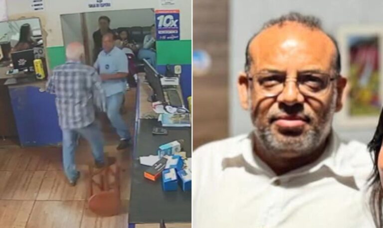 Empresário e suspeito brigando em loja antes de crime Uma briga entre o empresário morto a tiros em Ceres, Júlio Cesar de Araújo, de 55 anos, e o suspeito do crime, José Alves Carneiro, de 57 anos, foi registrada por uma câmera de segurança da loja da vítima. No vídeo, divulgado pela Polícia Civil, Júlio e José parecem discutir, até que a situação evolui para uma troca de agressões (veja acima). O crime aconteceu na sexta-feira (10). O g1 não conseguiu localizar a defesa do suspeito. De acordo com as investigações, a discussão teria sido motivada por um desentendimento financeiro entre os dois. Nas imagens do interior da loja, Júlio aparece atrás do balcão gesticulando com as mãos enquanto discute com José. A vítima então segue para o interior da loja, mas a discussão continua, com o suspeito na parte de fora da sala, até que Júlio se aproxima e é puxado pelo braço por José. ✅ Clique e siga o canal do g1 GO no WhatsApp Uma funcionária da loja tenta intervir na briga, que segue para o lado de fora. Outra câmera filmou o momento em que o suspeito e a vítima trocam chutes e socos, até que Júlio cai e é baleado pelo suspeito. Em outra gravação feita por uma testemunha próxima a um veículo, é possível ouvir cinco disparos e ver o momento em que José entra em uma caminhonete e vai embora logo após o crime. Ainda segundo a Polícia Civil, Júlio já teria sido ameaçado por José, o que pode indicar que o crime foi premeditado. LEIA TAMBÉM: ENTENDA: Empresário é morto a tiros em rua de Ceres; vídeo Novas imagens mostram ação que levou à morte de empresário em pastelaria Empresário de Anápolis morre após acidente na GO-010 José fugiu logo após o crime e não havia sido localizado e preso até a última atualização desta reportagem, segundo a Polícia Civil. O corpo de Júlio foi enterrado na manhã deste sábado (11), em Ceres. Júlio César de Araújo foi morto após uma discussão dentro de sua loja, em Goiás Divulgação/Polícia Civil e reprodução/Redes sociais 📱 Veja outras notícias da região no g1 Goiás. VÍDEOS: últimas notícias de GoiásAcompanhe mais notícias em nosso site.